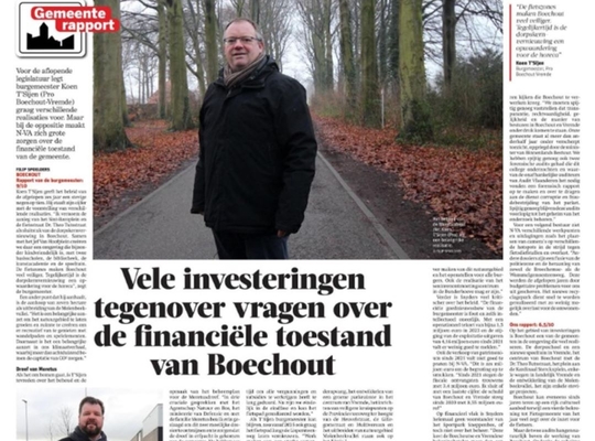 Maar de twee audits hangen natuurlijk boven de werking van Boechout. Ondanks de geheime conclusies van de rapporten sijpelden er zaken naar buiten die niet aangenaam zijn voor het bestuur en vele vragen oproepen voor bij de oppositie. Voor de toekomst van Boechout zou het goed zijn dat dit allemaal wordt uitgeklaard.